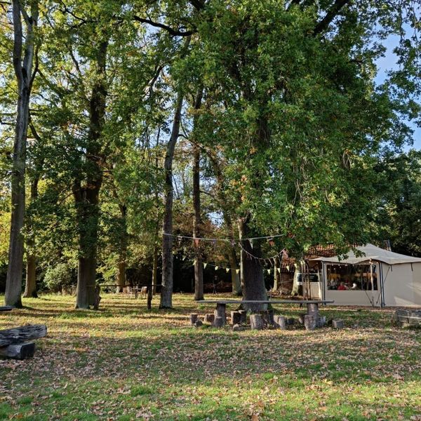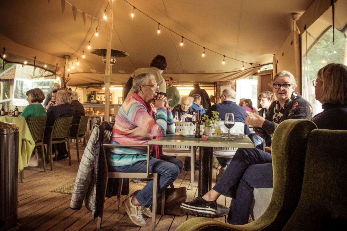 The condition of the building itself is unfortunately not yet sufficient to open the indoor venue. But feel free to enjoy a coffee, a Gageleer beer, or a Bio Lemonade in our cozy tent or green garden. Combine your visit with a beautiful walk through De Maten, wander across the dunes and enjoy the water, follow the boardwalk along the Stiemerbeek Valley towards the center of Genk, or stop by for a drink during a cycling trip through De Wijers, land of 1001 ponds. The volunteers of Natuurpunt Genk are eager to welcome you, and it is sure to be a pleasant experience!
