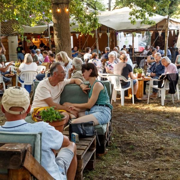 Host your party, meeting, or training session in the green oasis of the De Maten nature reserve. Our covered and heated Outdoor Bar accommodates 45 seated guests and features a spacious outdoor terrace. Perfect for any occasion, from drinks to business meetings. Beverages are available from the operator at affordable prices, and outside catering is permitted.