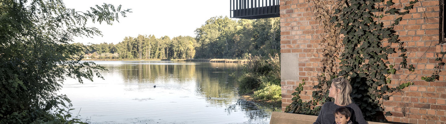 A specially constructed staircase on the outside of this protected tower building allows you to climb to the same height as the top of the building, no less than six metres high. From here, you get a beautiful view of the ponds and the cyclists passing by from the opposite direction. In this way, Bokrijk's various attractions are visually connected with each other.