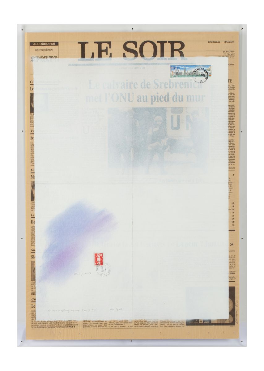 We tonen de reeksen 'Le Monde' en 'Le Soir', kranten die hij samen met de Zuid-Afrikaanse kunstenares Thea Soggot ritueel en systematisch het zwijgen oplegt. Denmark maakte met witte verf de kranten onleesbaar, waarna Soggot met pastelkrijt een vluchtige kleurenanalyse aanbracht van de plaatselijke ochtendhemel (Le Monde) en avondlicht (Le Soir). Het zijn tot stilstand gedwongen gedenktekens van onze informatiecultuur.